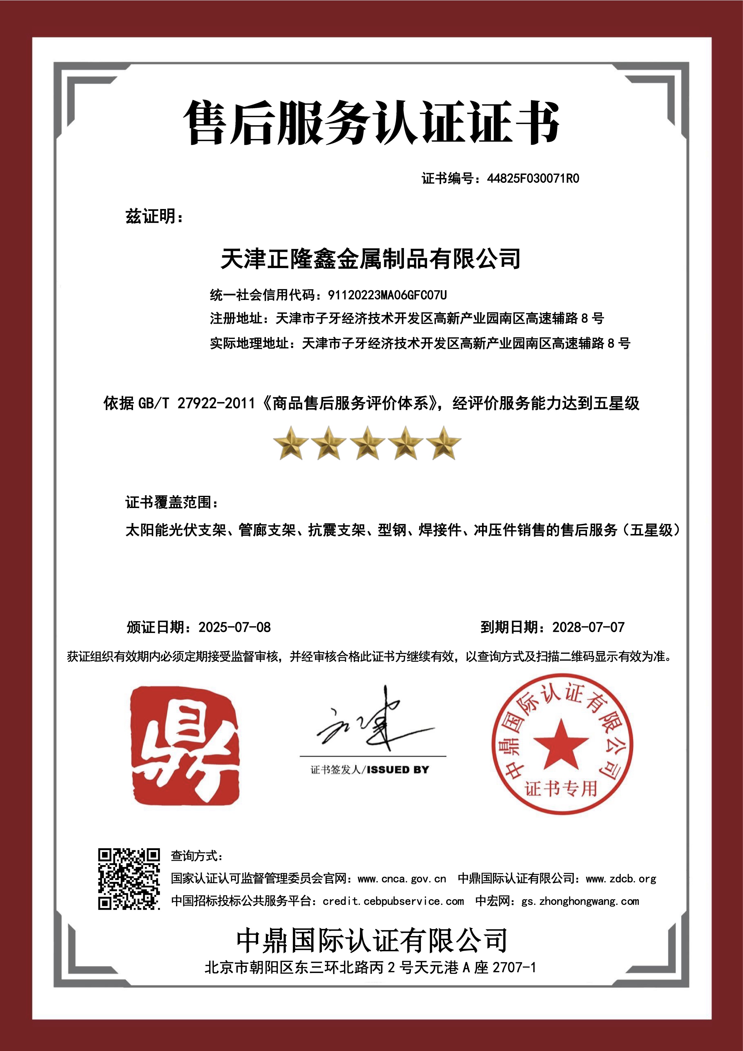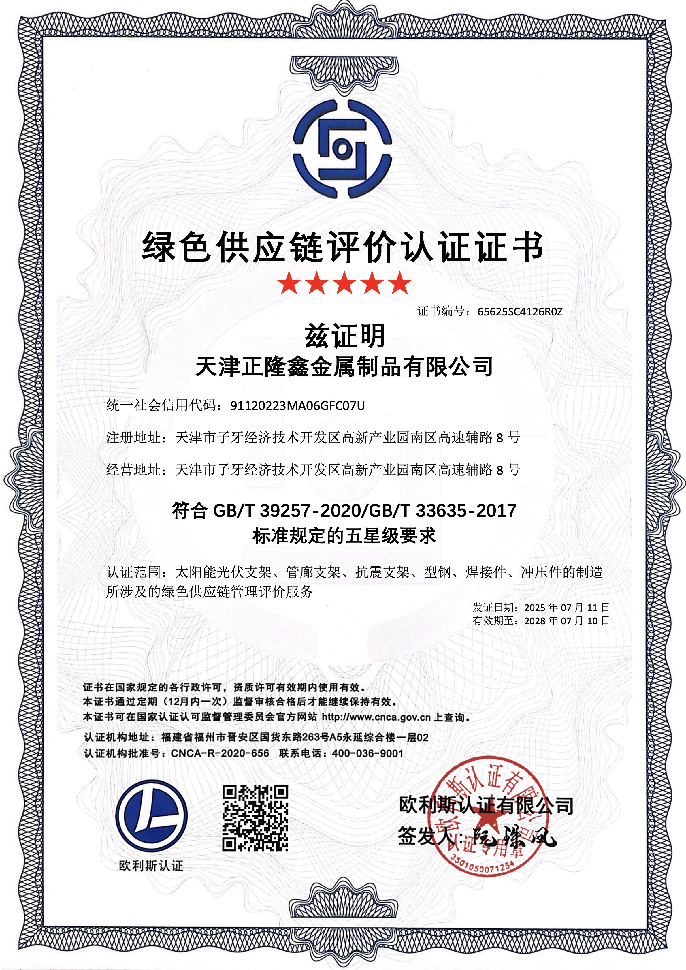 天津正隆鑫金属制品有限公司,近二十年来深耕新能源领域,是一家专注于高性能结构支撑系统研发、生产、销售与服务的智能制造企业。我们提供全系列产品,涵盖光伏支架、光伏地桩、钢结构系统、农业大棚、综合管廊支架、抗震支架、电缆桥架,以及各类型钢、金属冲压件与焊接件,凭借7万㎡自有智能制造基地与专业技术团队,为全球客户提供可靠、精准的解决方案。 我们以年产能15万吨以上的雄厚实力、可靠质量与持续创新为核心,产品与服务畅销海内外,积极拓展国际市场,致力于与全球伙伴建立长期共赢的合作关系,共同创造新能源领域新价值。 选择正隆鑫,携手专业、可靠与创新的力量。